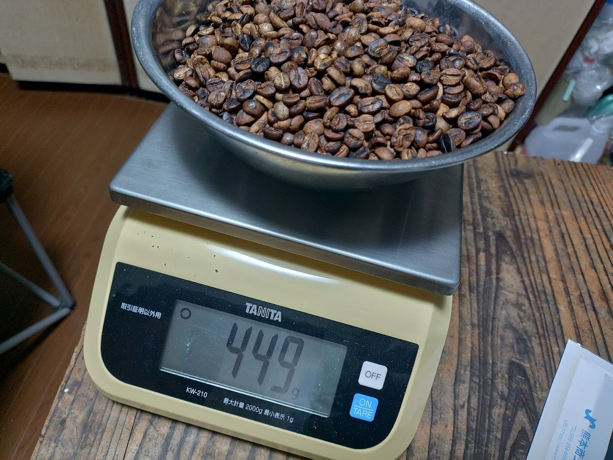 500gの生豆を焙煎して449g
